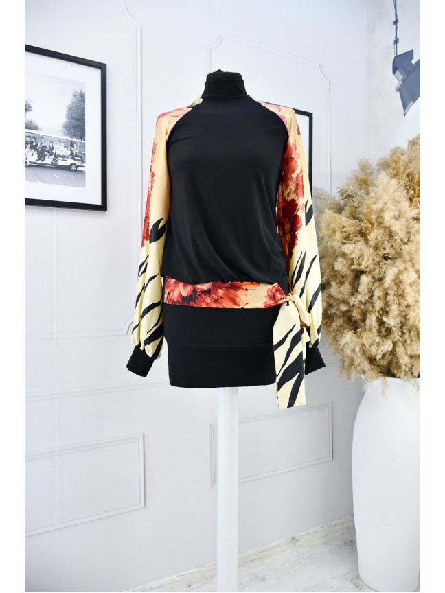 Сукня з напуском приховує зайве, формує комфортний, затишний , проте жіночний образ. Матеріал сукня якісний текстиль по типу "масла", рукав та пасок атлас.