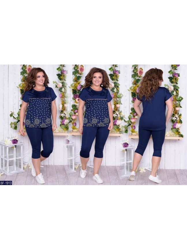 Відмінно тягнеться, бездоганно сідає на фігурі. Темний колір відмінно маскує недоліки. Відмінна довжина туніки прикриває попу. Капрі без манжета. Обидві речі з костюми відмінно носяться і гармонують в дуеті з іншими речами.